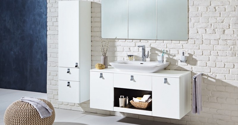 Zusammen mit Unterschrank und Spiegel beziehungsweise Spiegelschrank bildet das Waschtischensemble das Zentrum jedes Badezimmers. Mit hellen und freundlichen Tönen arbeitende Farbkonzepte zur harmonischen Raumwirkung, mit Spiegelflächen und einer Verteilung der Lichtquellen auf unterschiedlichen Ebenen kann der Längsdehnung schlauchförmiger Räume entgegengewirkt werden, und kleine Bäder erscheinen so luftiger und großzügiger.